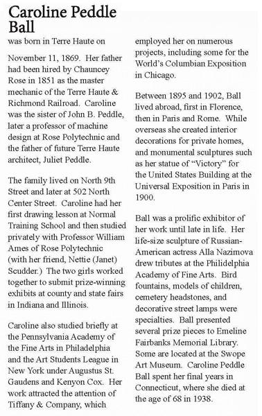 Caroline Peddle Ball was a successful sculptor whose works were exhibited around the country. -