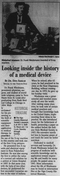 Dr. Frank Wiedman was a medical figure who pioneered the use of x-rays in the United States and preformed the first Caesarian section in the state. -