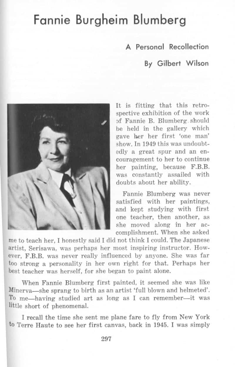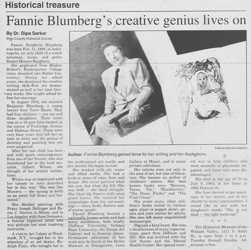 Fannie Blumberg was a famous artist known for her paintngs of nature and people. She was also a famous children's book author who's work included "Rowena, Teena, Tot" and "The Last Circus." -