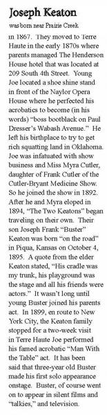 Keaton was Vaudeville preformer who's "man with a table" act was widely popular. His son, Buster Keaton, would go on to new heights as one of the silent film era's top stars. -